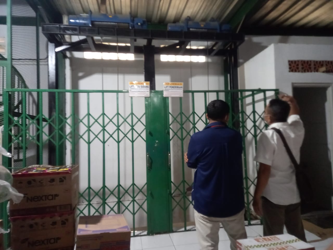 Pemasangan lift barang di pergudangan SIRIE lingkar timur